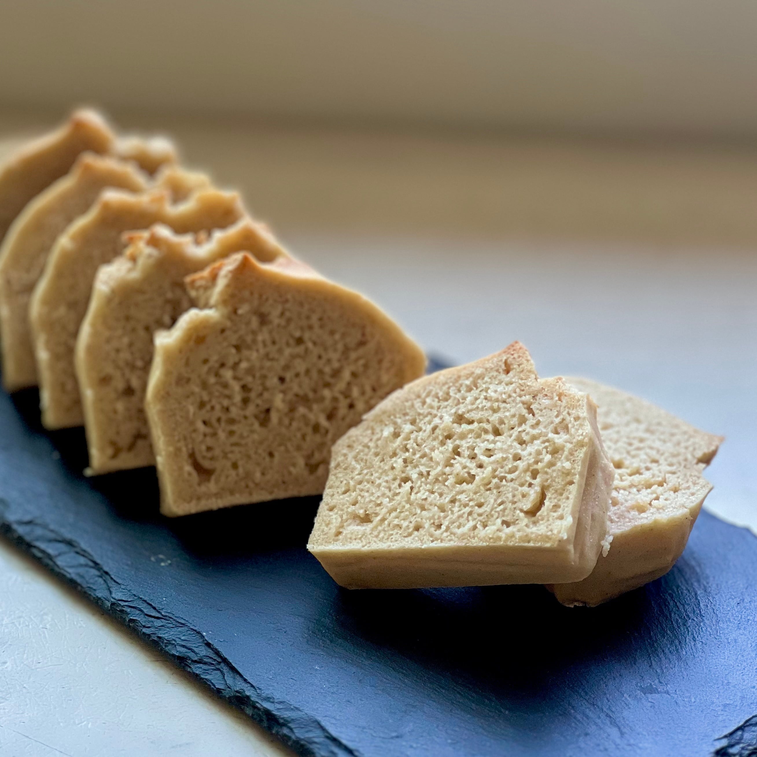 お米パン(ノンオイル・シンプル)は、自然栽培の玄米を使用し、グルテンフリーでありながらも、しっかりとした食感と豊かな味わいが特徴です。オイルを一切使わず、素材の味を引き出すシンプルなレシピで仕上げています。